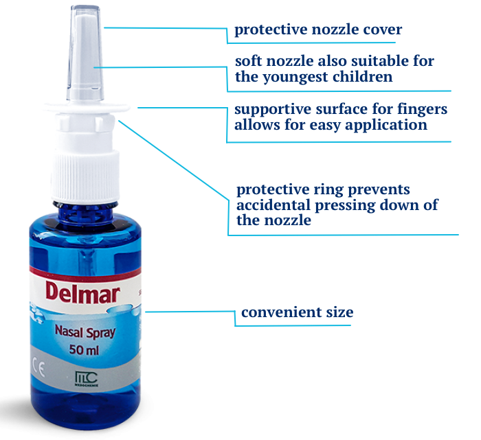 Delmar nasal spray has self-purification properties, and promotes the regular production of protective mucus.